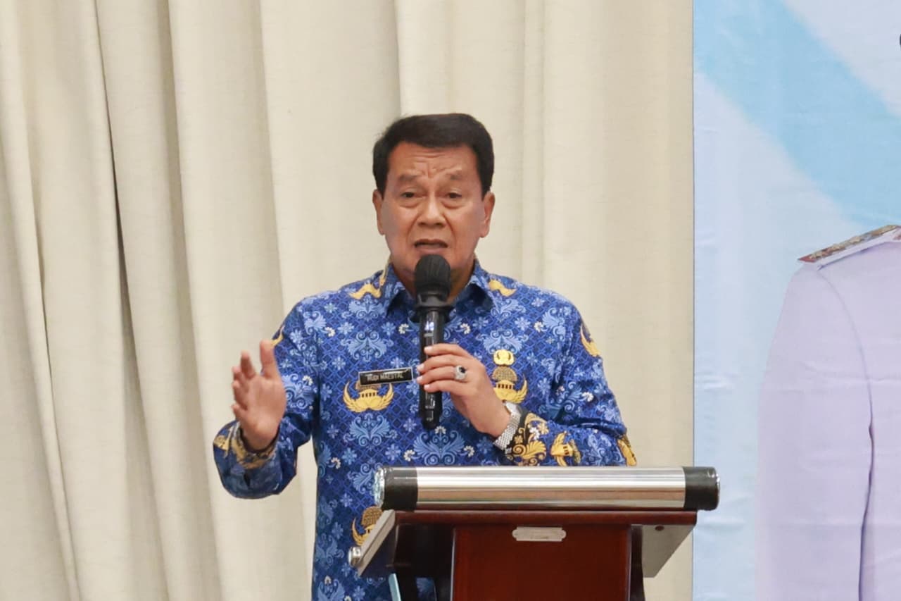 Bupati Tangerang Moch Maesyal Rasyid membuka seminar rekomendasi penerapan Jam Balajar Masyarakat (JBM) yang diinisiasi Dewan Pendidikan Kabupaten Tangerang di Hotel Lemo, Kecamatan Kelapa Dua, Jum’at (28/11/25).