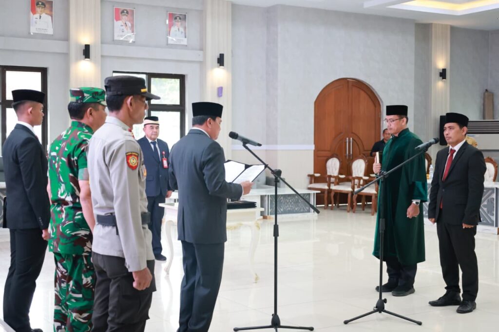 Bupati Tangerang, Moch Maesyal Rasyid melantik dan mengambil sumpah Direktur Operasional (Dirops) Perumda Pasar Niaga Kerta Raharja (NKR) yang dilaksanakan di Aula Pendopo Bupati Tangerang, Jl. Kisamaun Kota Tangerang, Selasa (30/12/25).