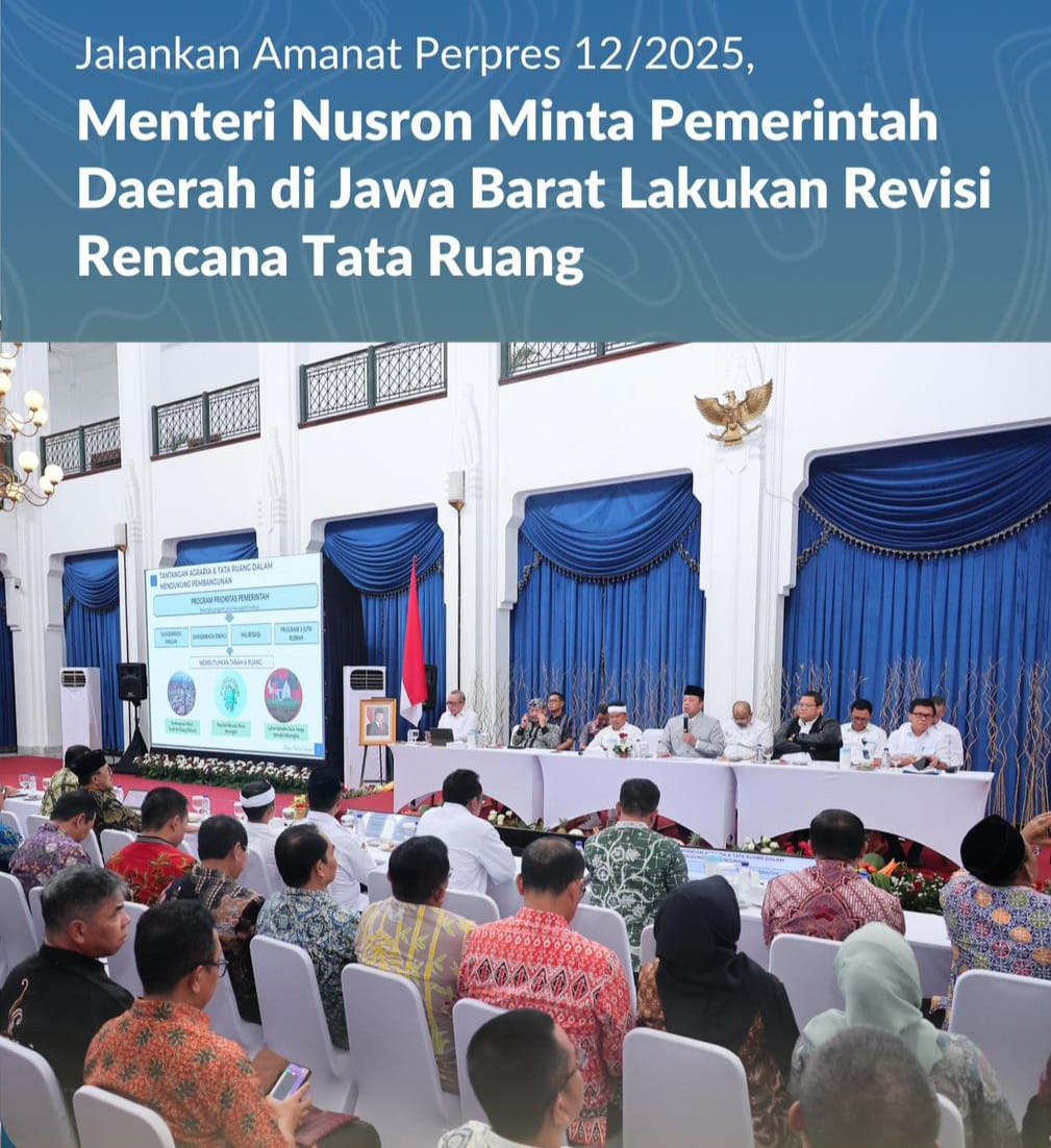 Jalankan Amanat Perpres 12/2025, Menteri Nusron Minta Pemerintah Daerah di Jawa Barat Lakukan Revisi Rencana Tata Ruang.