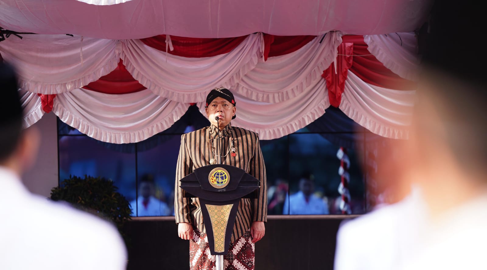 Upacara berlangsung khidmat dengan rangkaian prosesi pengibaran bendera Merah Putih, pembacaan teks Proklamasi, hingga penampilan atraksi seni dan budaya dari berbagai daerah di Indonesia.